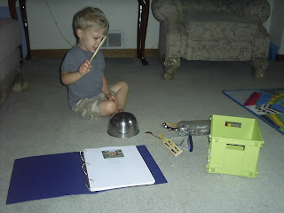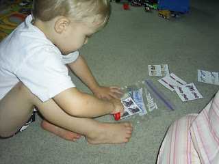 We did our little clip game. (Sorry for the huge up close picture, not sure what I was thinking with that one.) It seems activities that take me 2 minutes to put together, like this one, are his favorites. He wants to do this all the time. The ones that I spend hours on are the ones he's never interested in. {sigh} There's a lesson in there somewhere for me...