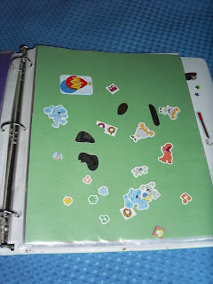 It really looked much neater before he got his hands on it, but I didn't straighten it up before taking pictures because I wanted you to see how much he really loved it. He played with it for a long time and carried it around with him for days. The stickers (mostly) peel right off of the page protectors so they can be used again and again.